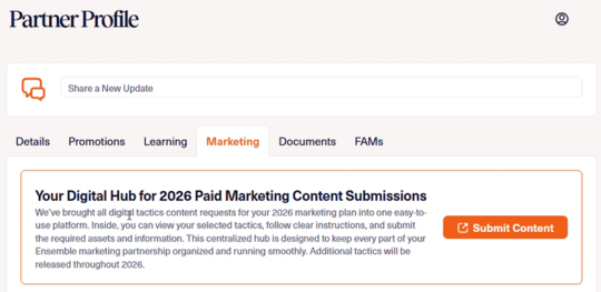 - Navigate to the Marketing tab of your Partner Profile