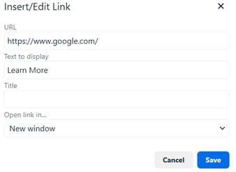 In Support Copy, Advisor Terms, and Consumer Terms, you can also add hyperlinks. Select the text you want to link, apply the hyperlink option, and connect readers to helpful pages or resources.